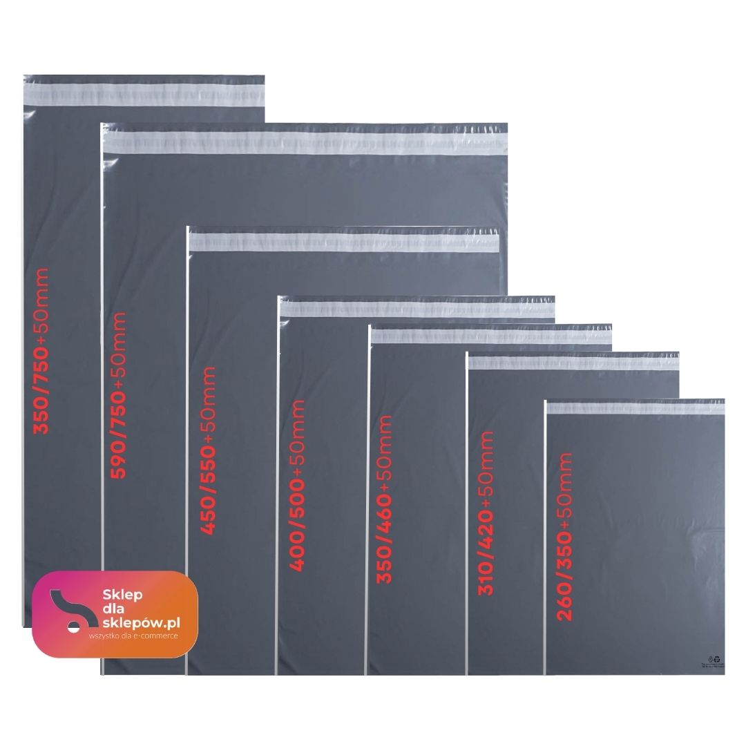 Koperty foliowe wykonane są obustronnie w kolorze szarym/grafitowym co sprawia, że zawartość przesyłki jest niewidoczna.